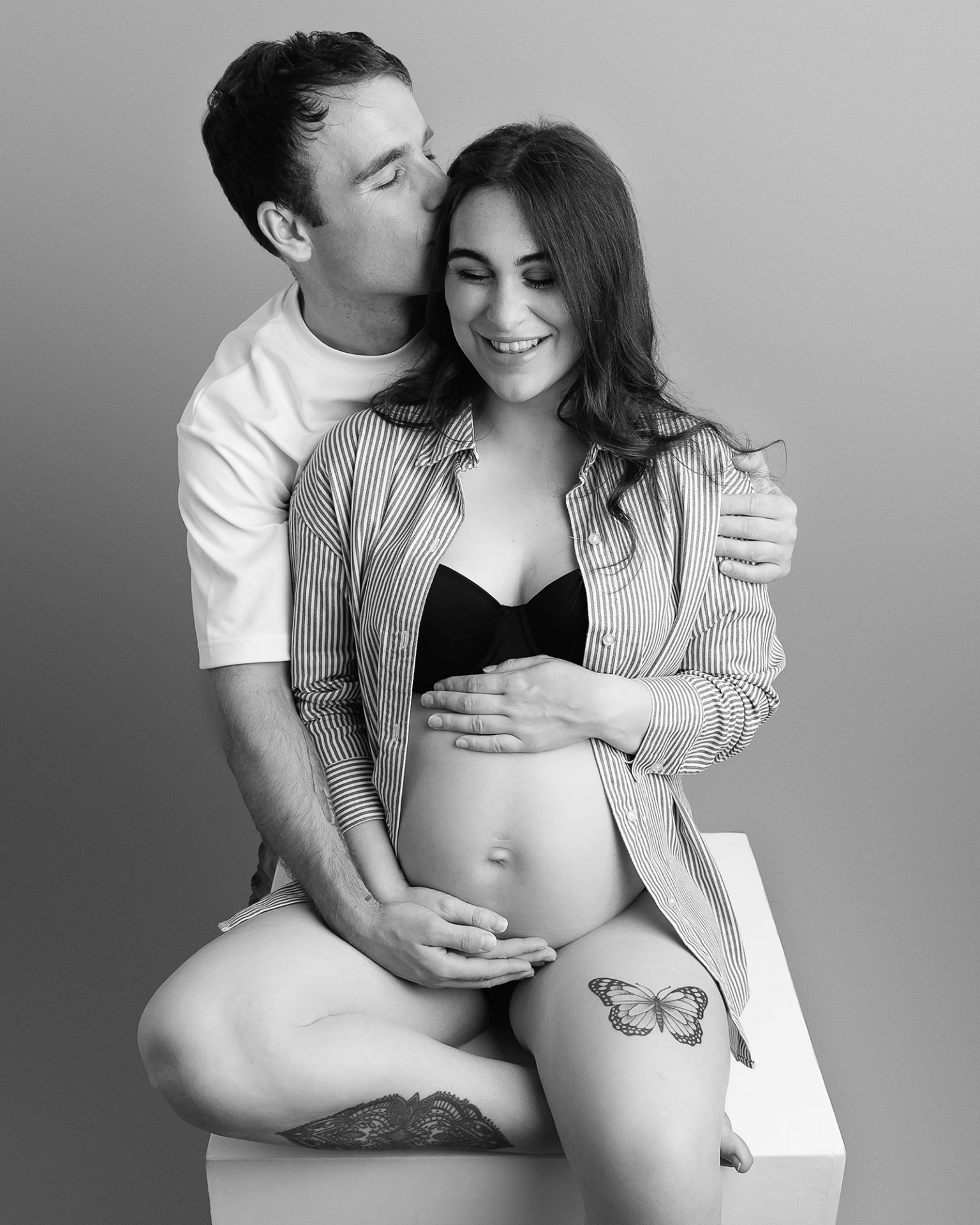 As an experienced pregnancy photographer, I offer both studio and outdoor maternity sessions. You can choose to be photographed on your own or with your loved ones, wearing a flowing gown or delicate lingerie, whatever makes you feel most confident, beautiful and radiant.